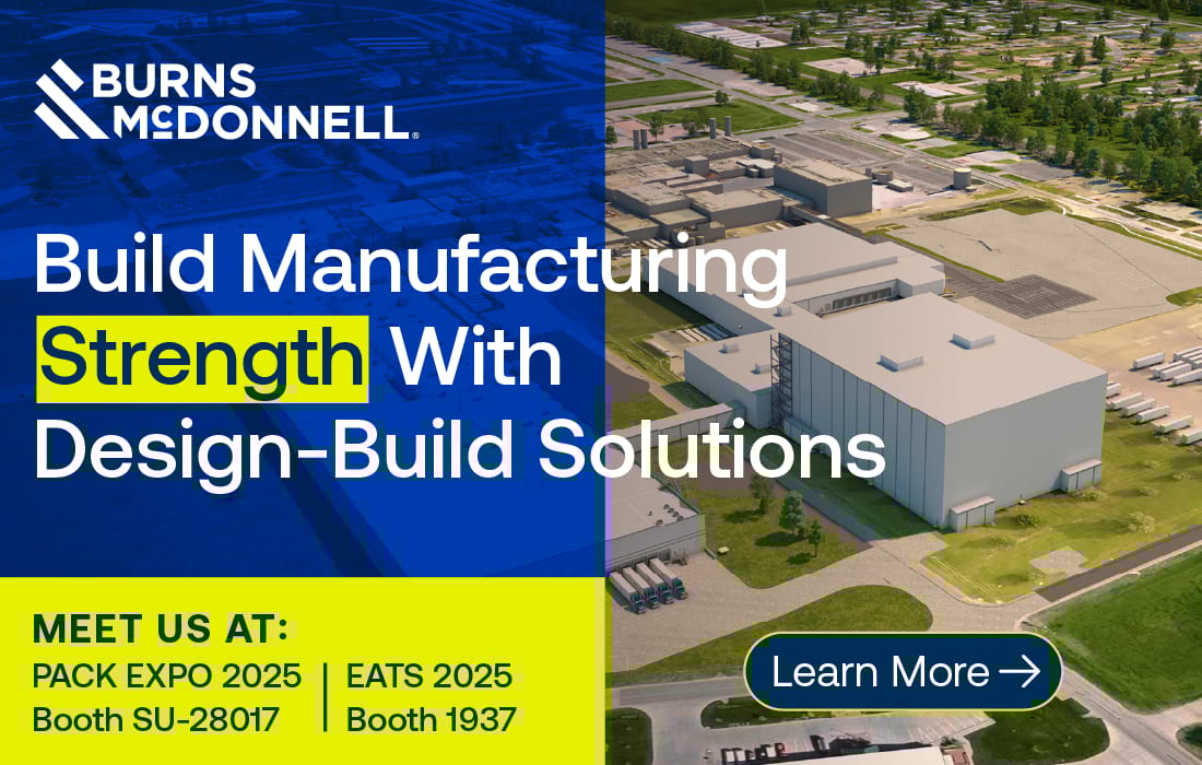 “The industry continues to see robust investment in new processing and distribution facilities, with dozens of major projects announced monthly across the U.S.,” says Robb Raney, food and beverage manufacturing project director, Burns & McDonnell. “This includes not just new construction, but also expansions and significant equipment upgrades to boost capacity and efficiency. While new developments remain strong, there is also a notable number of network optimization projects, signaling a shift as companies modernize their operations.”