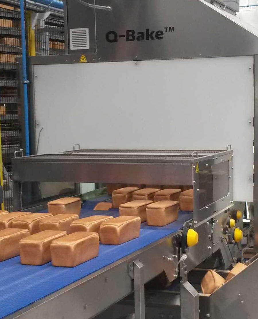 Rejection is an important component to consider when integrating or upgrading a vision inspection system. You can see a loaf of bread toward the middle dropping down a conveyor, then the conveyor on the right side of the image sends the product to the discard bin. Photo courtesy of KPM Analytics