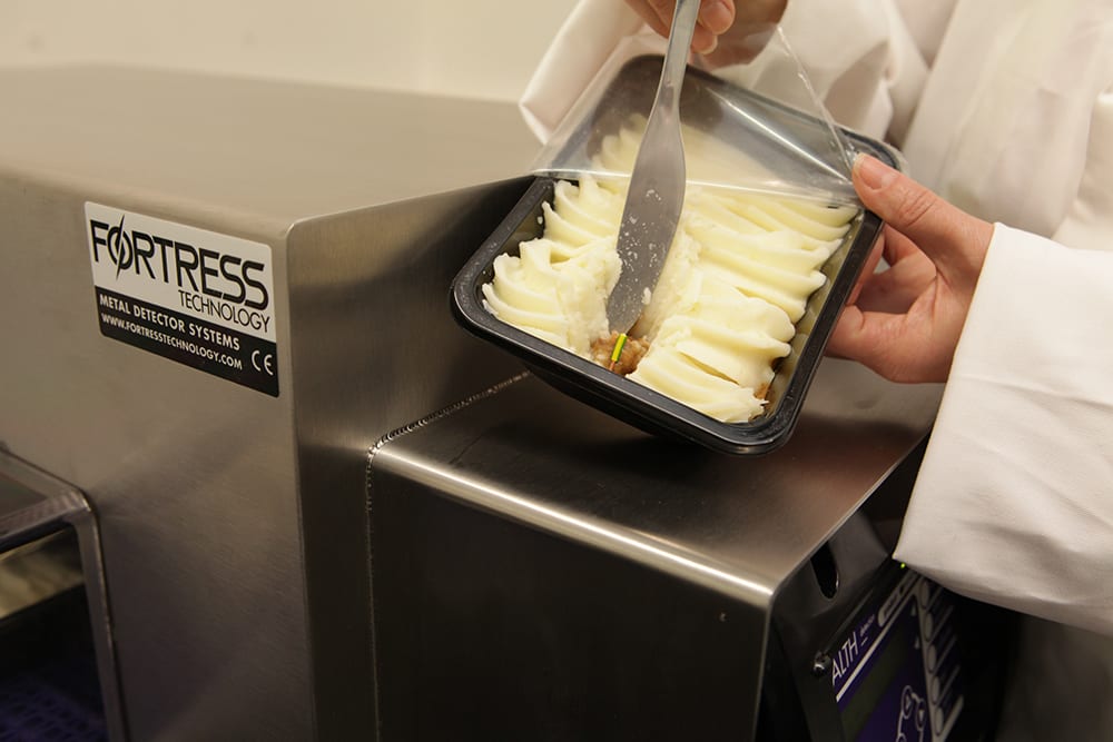 Upgrading technologies is generally recommended when specific needs arise, such as meeting new retailer requirements, improving the inspection performance in difficult applications or adding features like data capture. In this case, a metal detector at the end of line locates a wire fragment. Photo courtesy of Fortress Technology