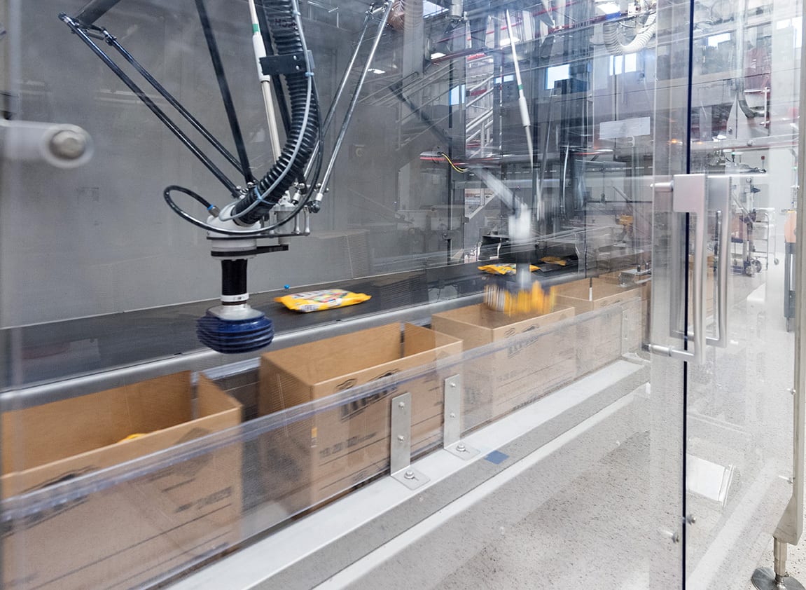 Secondary packaging of pouches of candies into a case placed by delta-robots. Photo courtesy of Imagemakers Inc.